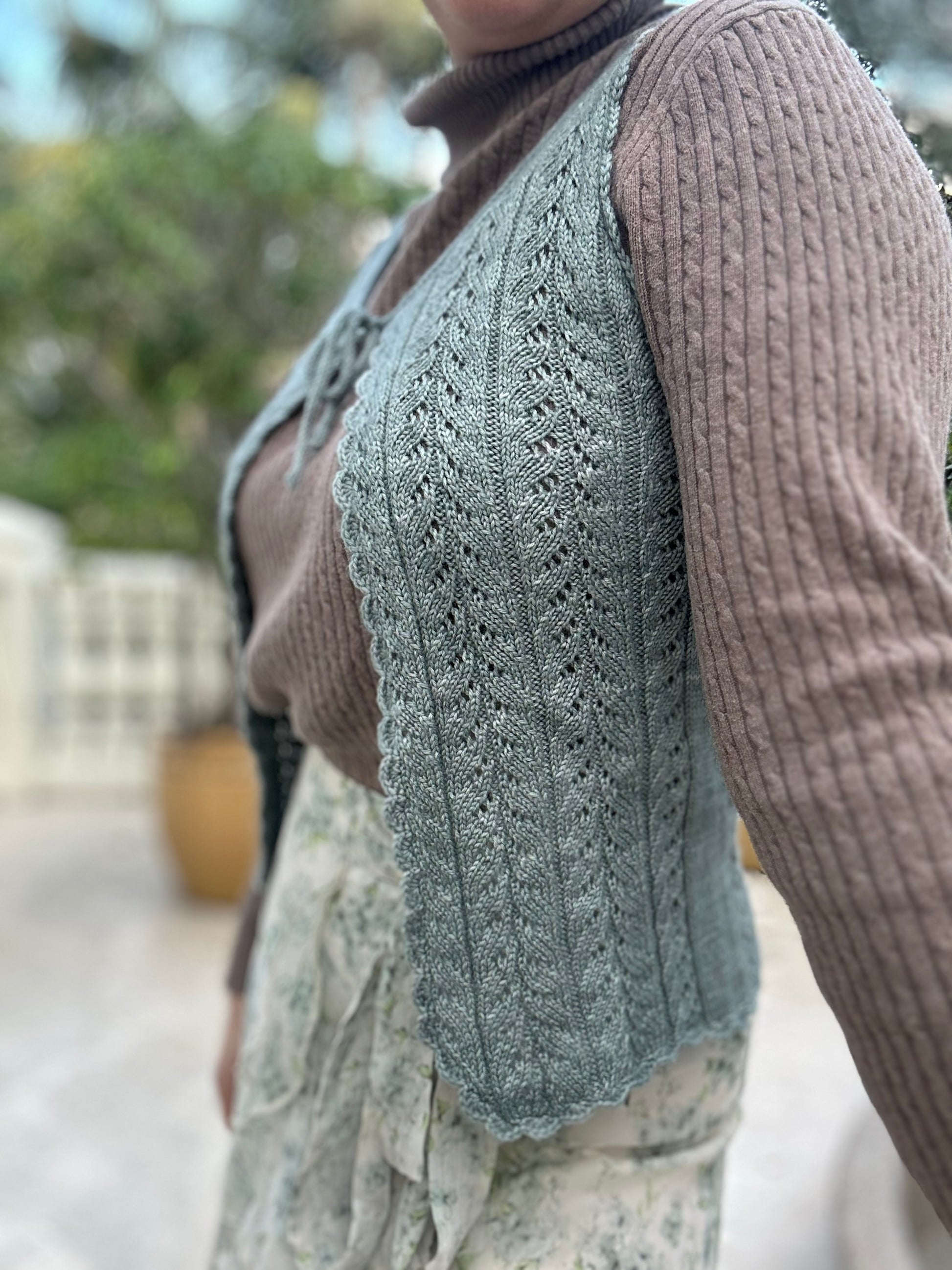 “This is such a beautiful piece to knit and wear. This could be an heirloom piece or something gifted for a special occasion, it’s truly stunning! The lace motif is easy to repeat and memorize so don't let the lace work deter you!”