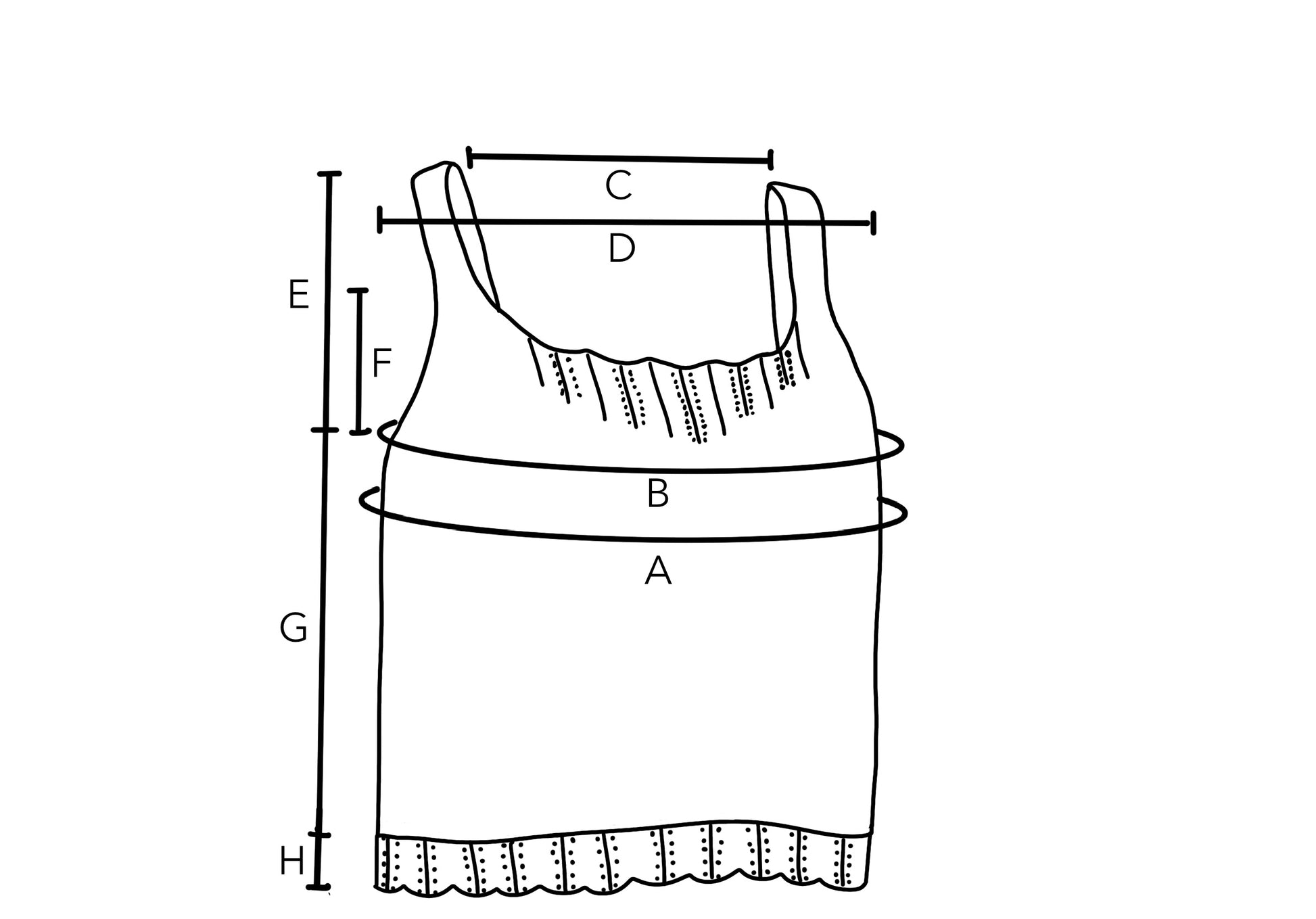Ideally the front panel fits snugly and is wide enough to cover any undergarments. The upper bust and bust circumferences can be easily adjusted by casting on fewer stitches when joining in the round.