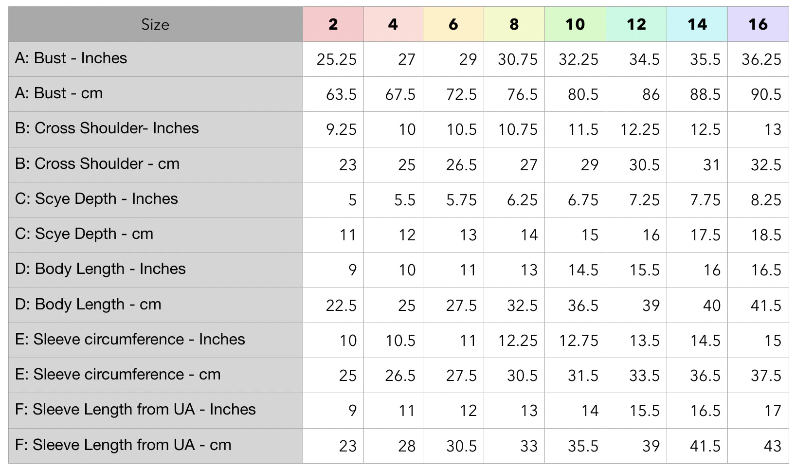 Graded to fit a full bust of 30” to 62” / 75 cm to 155 cm.