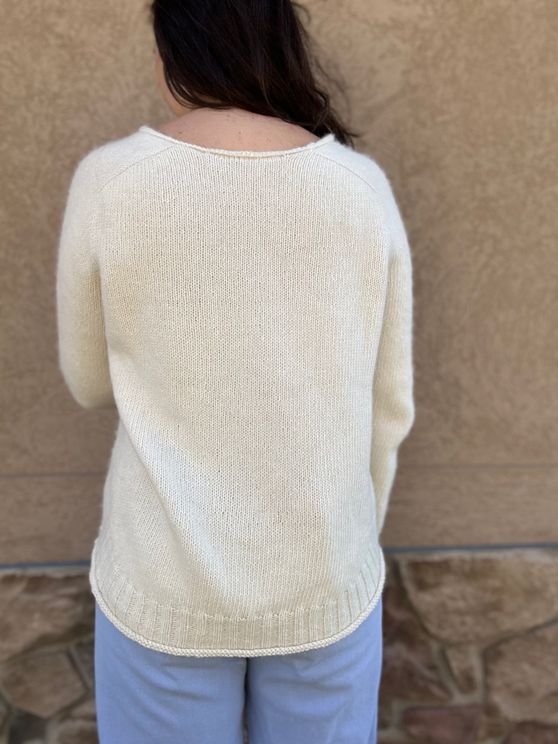 It’s a very enjoyable knit, with a very similar knitting experience to a top down raglan. Rest assured, fit was not sacrificed. The contiguous construction adds plenty of shoulder shaping with strategic increases. The result is super comfortable, roomy, cozy, and provides excellent fit across the shoulders.