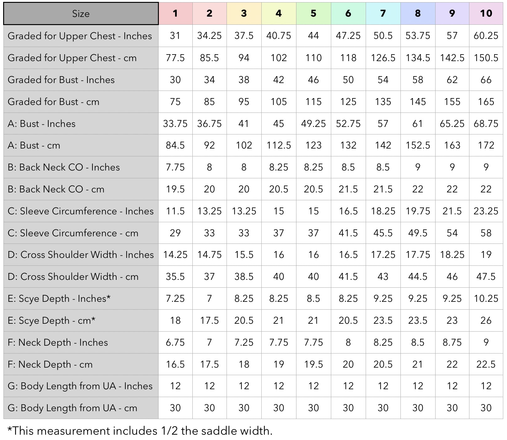 Choose the size graded for your Upper Chest measurement, or the one that will fit your shoulders best. If between sizes, size down.