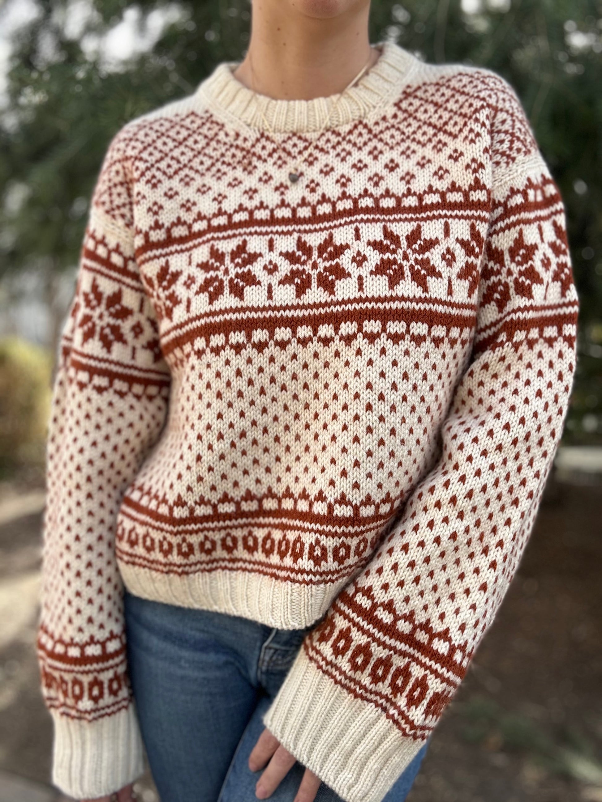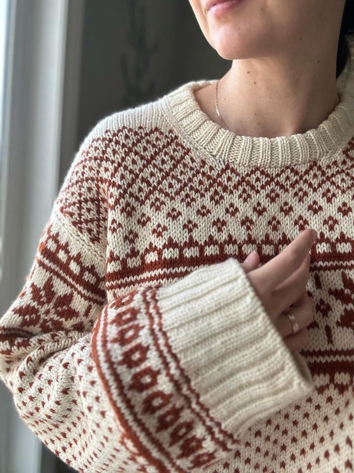 Ever wanted to knit a traditional colorwork sweater, but steeking put you off? Say hello to Little Crystals. Get the traditional look, with a modern seamless construction. Perfectly oversized without compromising on fit.