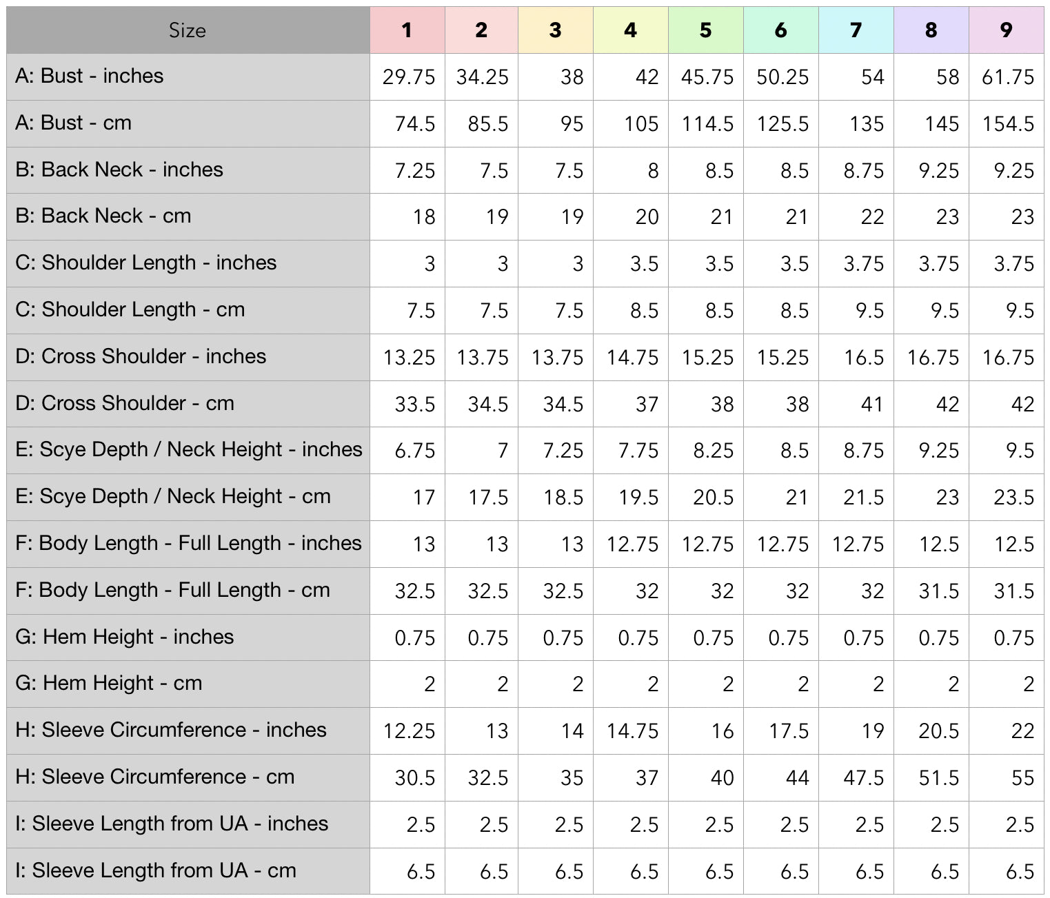 -Optional bust short row shaping in at least 3 cup sizes (size 1), up to 7 cup sizes (size 9)