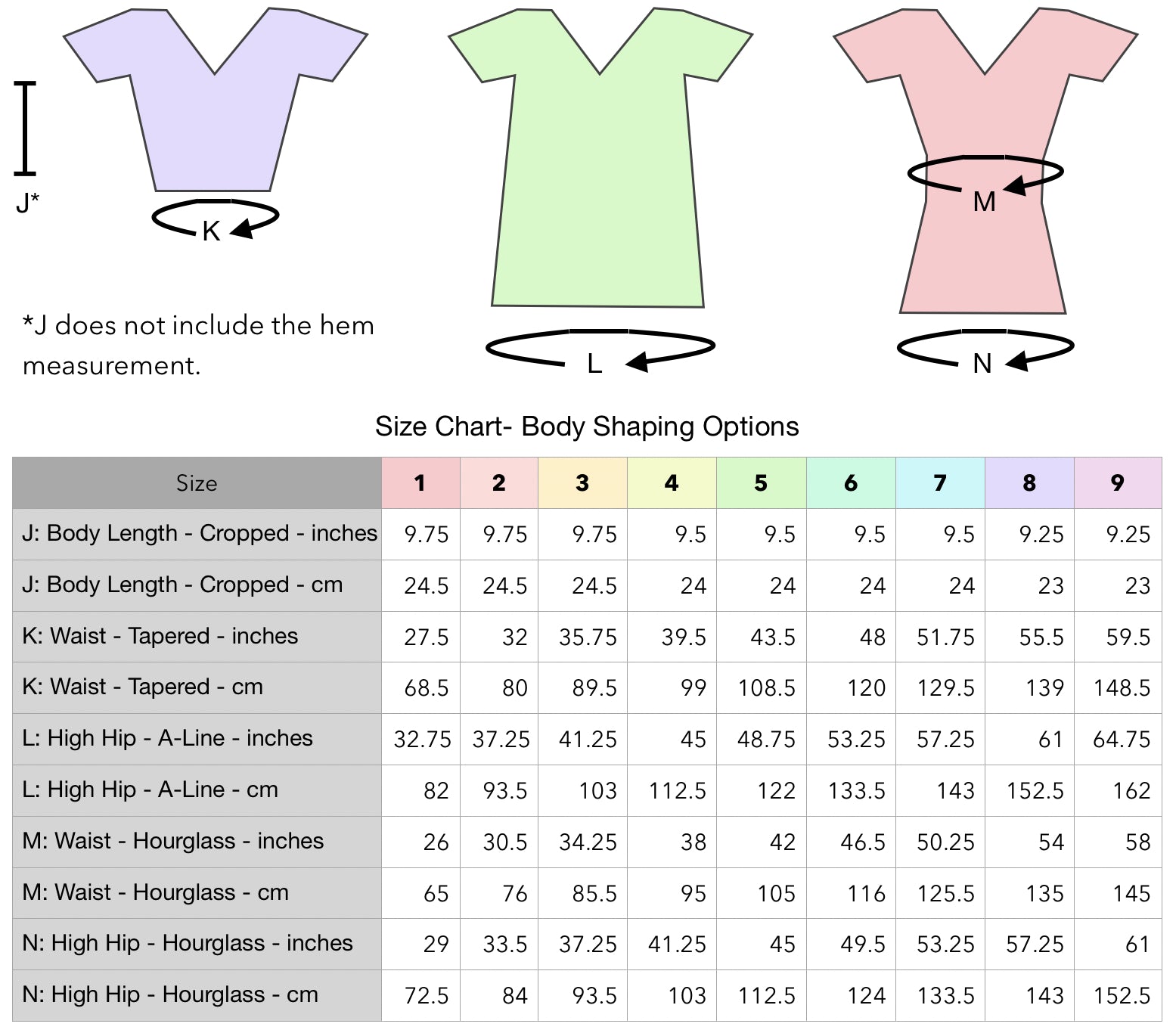 -Instructions for 4 body shaping options (Straight, Tapered, Hourglass, A-line)